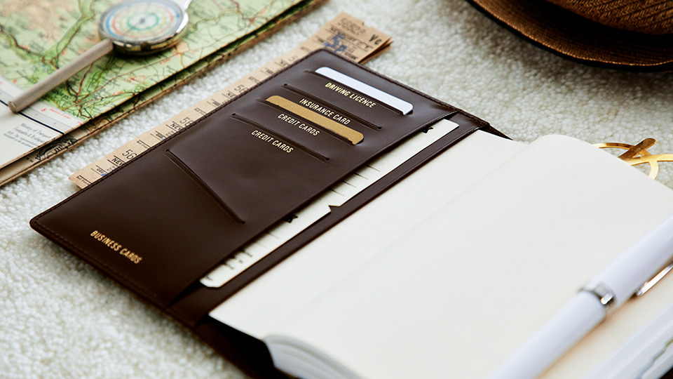 The card pockets inside the cover are sized to perfectly fit standard-size business cards (55 mm wide). The pockets may be slightly rigid and difficult to use at first, but this will soften over time.