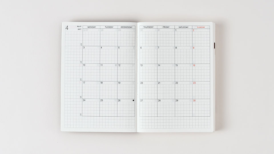 (Specifications may vary slightly)Weight Approx. 202 g Total pages 448 pages Binding Type Stitch-binding Paper Type Tomoe River paper (planner-specific type) Grid size 4 mm Yearly Calendar 2017 - 2018 Yearly Index Dec. 2016 - Mar. 2018 (8 pages) Monthly Calendar Dec. 2016 - Mar. 2018 (32 pages) Daily Pages Jan. 1 - Dec. 31, 2017 (379 pages)