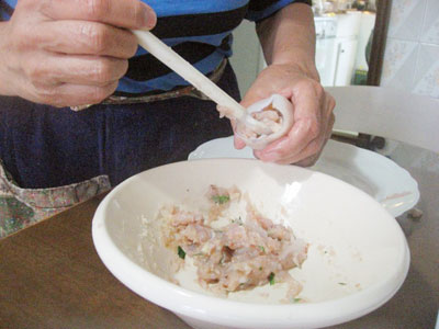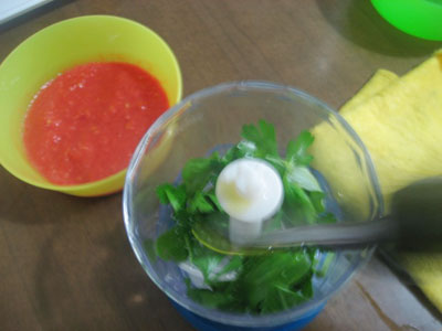(2)パン粉、粗みじん切りにしたイタリアンパセリ、