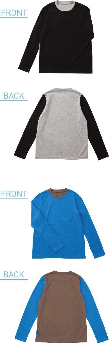 襟ぐりには、後ろ身頃の色がちらりと見えます。