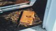 Among all four colors in the series, the Naturale cover shows the most drastic transformations over time. The amber color and luster deepen the more it is handled, so the individuality and habits of its user are gradually reflected in the leather. Yellow stitchwork accents the tan leather nicely, and the mature look of this sophisticated cover is paired with playful stitching of a dog beside a tree.