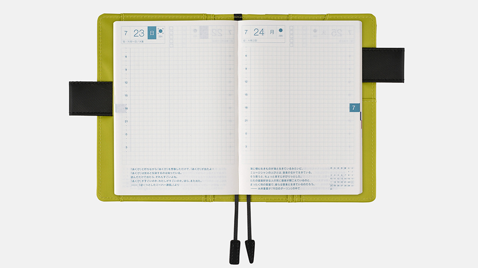 *A page is included at the beginning of each month to help in planning ahead.Quotes One per day (Japanese) Weekly Calendar Not included Memo Page Book 1: 2 pages