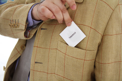 これをね、お試し用の紙、 ムエット(試香紙)って言うんだけれど、 ここにちょこっとつけて、持ち歩きまーす。 どこにいれようかな、 ポケットにいれようかな? かばんに入れてもいいしね。