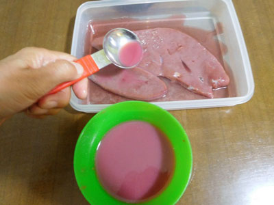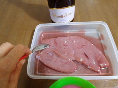 EVオリーブオイルを入れてレバーをさっと焼く。