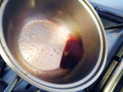 (8)とろみがつくまで弱火でゆっくり煮る。