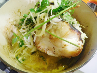 (2)EVオリーブオイルを入れた鍋で