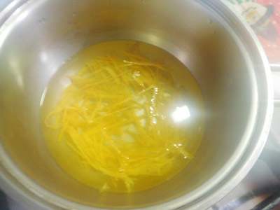 (9)オレンジの皮を入れる。