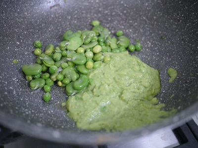 残しておいたグリーンピースを鍋に入れる。