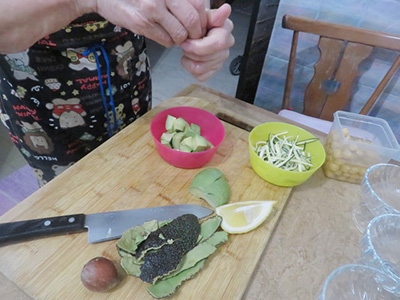 (4)アボカドを切り、