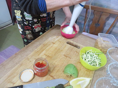 (5)バーミキサーで潰す。