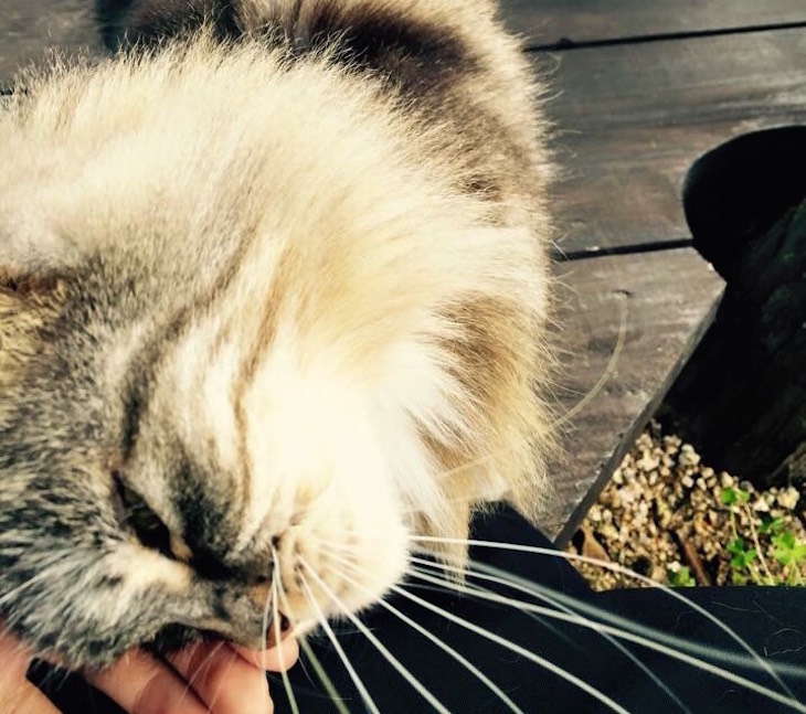 そうしたら、あろうことか、猫は私の手に頭をすりつけてくるではないか。