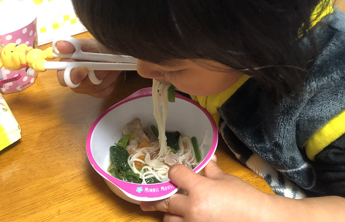 「…みんちゃん、おうどん食べるの、じょうずね。