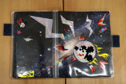 宇宙をモチーフにしました。PCで宇宙の写真をプリントアウト、