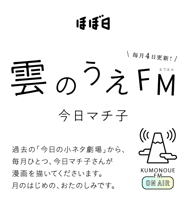 2005年から連載を開始した読者投稿コンテンツです。2022年時点ですでに17年以上、「今日のコドモ」「今日のダンナ」「今日のじーばー」「今日の気になるあいつ」….などの20以上のカテゴリから、日替わりで毎日欠かさず3ネタを更新してきました。アーカイブを残していないため、その日のネタは、その日にしか読めません。2016年には、過去の傑作から選りすぐって書籍化もされました。ほぼ日に来たら、まずはここからという読者も多い、大人気のコーナーです。今日の「今日のコドモ」は、こちらからどうぞ。