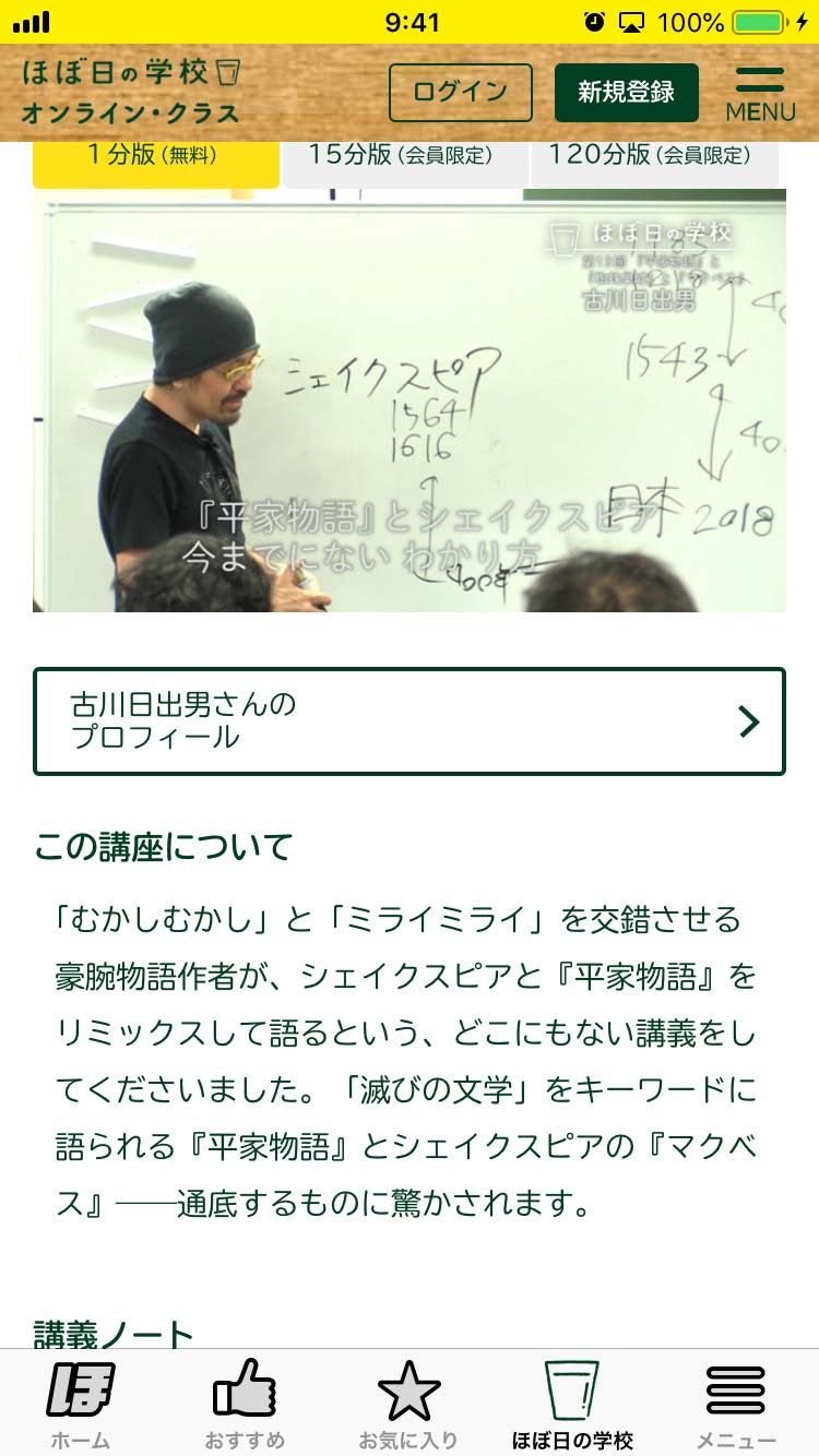 今は、シェイクスピア講座の14回全ての授業が公開中です。