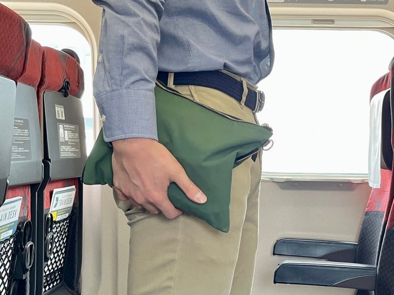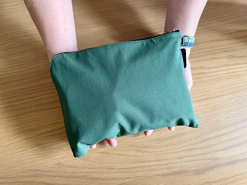 手に持っているのが「tragen フラットポーチ(A5サイズ用)」です。