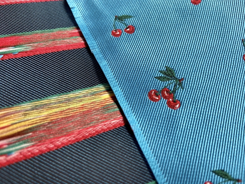 The Bow & Tie series, made with woven fabric used for neckties, has been a staple for over 10 years. The design changes every year, and this year's hCherryh has a watercolor-like feel to it.