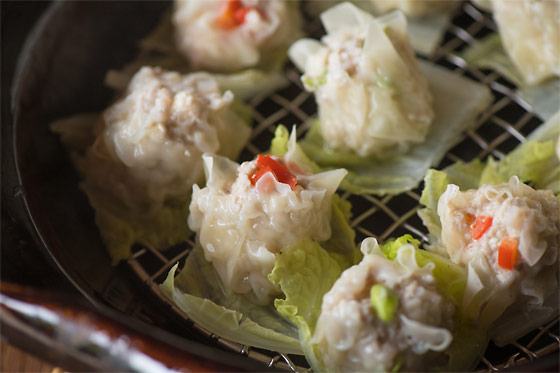中華スープ、酒、醤油をまぜたタレをかけつつ