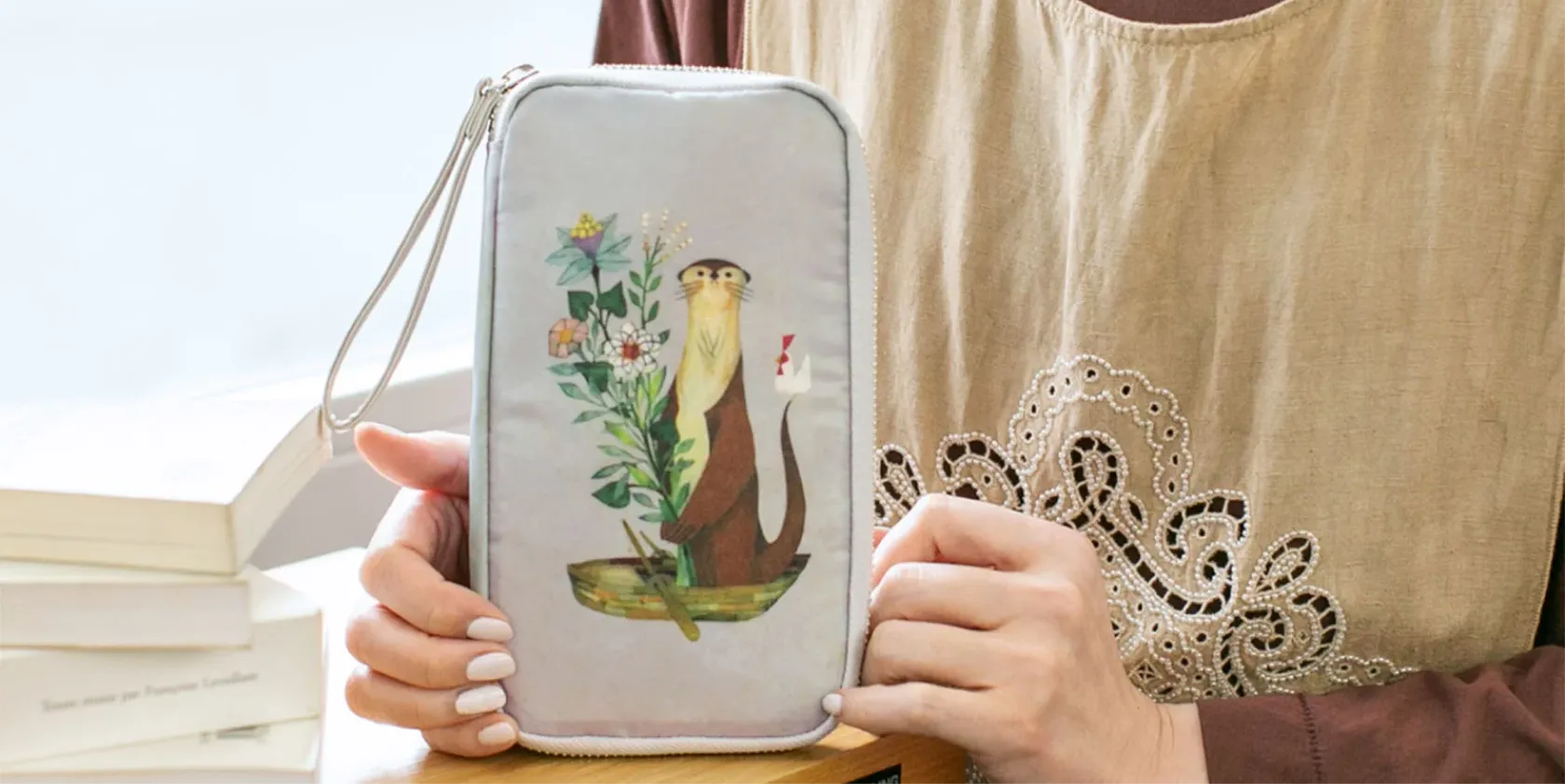 The Áne is a compact pouch the size of a long wallet,but it can hold more than just your cards,coins,and money. Thanks to its accordion-style opening it can also store checkbooks,cosmetics,writing tools,or the Hobonichi Techo Weeks.