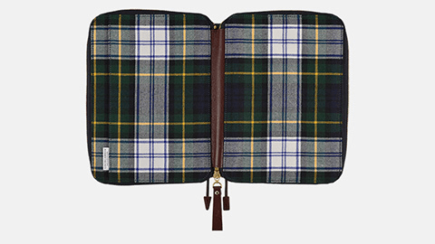数百種類のタータンから選んだ「Dress Gordon」(ドレス・ゴードン)は、グリーンを基調としたチェック柄。太めのホワイトラインを中心に、イエローやブルーのラインがうつくしく配置されています。「ゴードンタータン」と呼ばれるデザインのドレスバーションで、社交界に参加する女性たちが身につける柄としても愛されています。上品な落ち着きと、ジッパーズならではのカジュアルさが組み合わさり、どんな年齢層の方にも使いやすいカバーです。