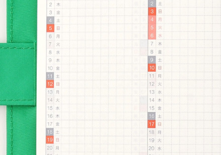 日付は方眼のマス目に1日ずつレイアウトされているので、