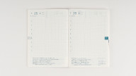 The Avec is designed to allow users to collect items on its pages without causing unwieldy bulk. It splits the same book, design and all, into a 2-book set at six months each, with only slight variances in calendar spans and the number of extra pages in the back. This allows users to fill the 3.7 mm graph paper to their hearts’ content.