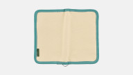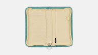 The coarse, off-white cotton canvas surface feels pleasant to the touch and is outlined with refreshing mint-blue piping. You can handle the cover as roughly as you would a sturdy tote bag, and never tire of its nice look as you carry it with you every day.