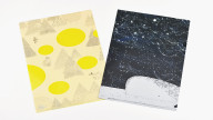 The intricate drawings are printed onto the outside of the clear folders, and the paint-like backgrounds are printed on the inside. Storing papers and photos in the folders separates the overlaid illustrations so you can see them in a new light against the contents.