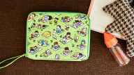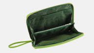It’s fun to look at each of the characters in the illustration and take in all the excitement (or relaxation) happening. The pouch interior is a deep green, and the zipper includes a looped strap for easy handling.