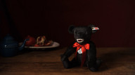This unique bear, while keeping its characteristic sharp claws and deadly fangs, was newly designed with the luxurious touch of Steiff. This bear is based on a classic teddy bear originally created at the beginning of 1900, making it abound with classic details such as short fur, warm brownish black in color, densely packed, firm texture, and relatively short limbs in proportion to the body. It has a hump on its back below the neck, a signature of Steiff teddy bears.