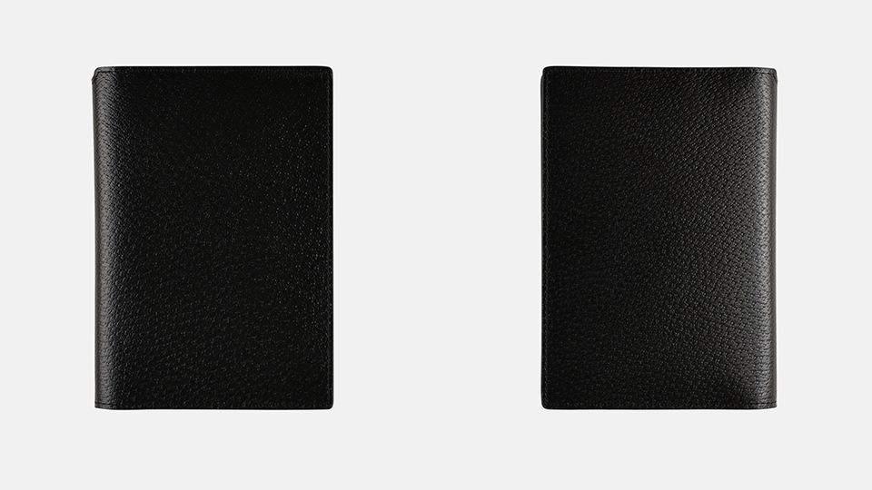 The card pockets inside the cover are sized to perfectly fit standard-size business cards (55 mm wide). The pockets may be slightly rigid and difficult to use at first, but this will soften over time.