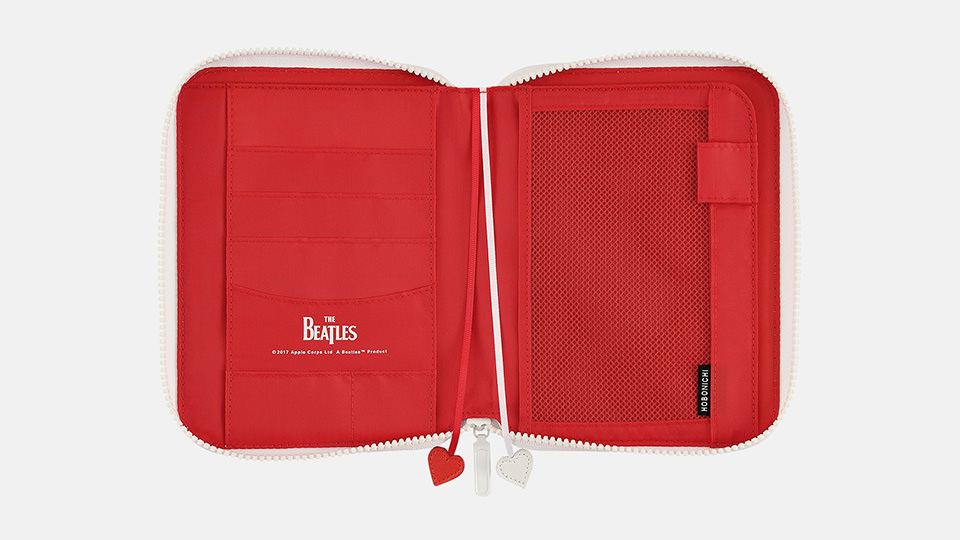 Interior is bright red. The official logo and credit of the Beatles on the bottom left pocket authenticate the collaboration between Hobonichi Store and the beloved band.