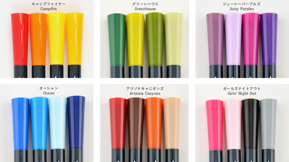 Stamp ink maker “Tsukineko,” established in 1952, designed these markers as an alternative to an ink pad. They also work great for applying several colors to a single stamp, and reduce the mess when using stamps on the go. The beautiful colors are slightly translucent, like a mild-colored highlighter. Both ends of the marker are fitted with a thick and a thin size pen nib. You can write directly onto the paper with this marker, or use it to color in your stamps.
