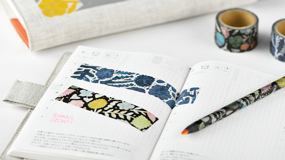 Makoto Kagoshima, artist of Bird, Flower, Willow and Cat Trio, has designed the floral artwork on these beautiful washi tape rolls. The products are part of Zuan & Zokei, a brand created by Kagoshima and Biotope Corp.