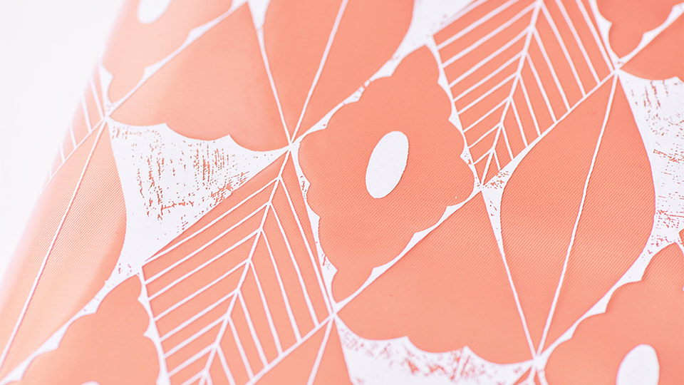 HANA nomad by illustrator Chihiro Yasuhara despicts a series of diamonds, flowers, and leaves that almost look like a window into another world. A swan can also be seen blending in with the design. The illustration is tastefully accented with areas that appear as if the ink has faded.