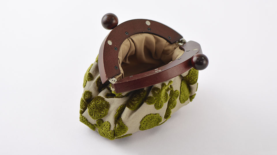 The textured cotton-flax fabric of Koyaguchi Pile is covered in images of green plants that seem to grow right off the cover. The woven fabric is made at the foot of Mt. Koyasan in Wakayama Prefecture. The design is actually the result of decades of work from a local business that designs patterns for pile fabrics. This beautiful textile has been used to create a zip-up pouch and a magnet-sealed coin pouch.