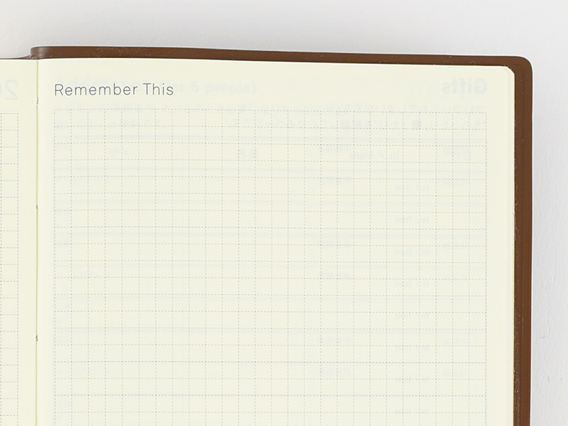 Record the presents you’ve given or received in the Gifts page so you don’t forget who gave what to who and when. This is also helpful for thank-you cards. There are spaces for 17 entries in the A6-size book and 40 entries in the A5-size book.