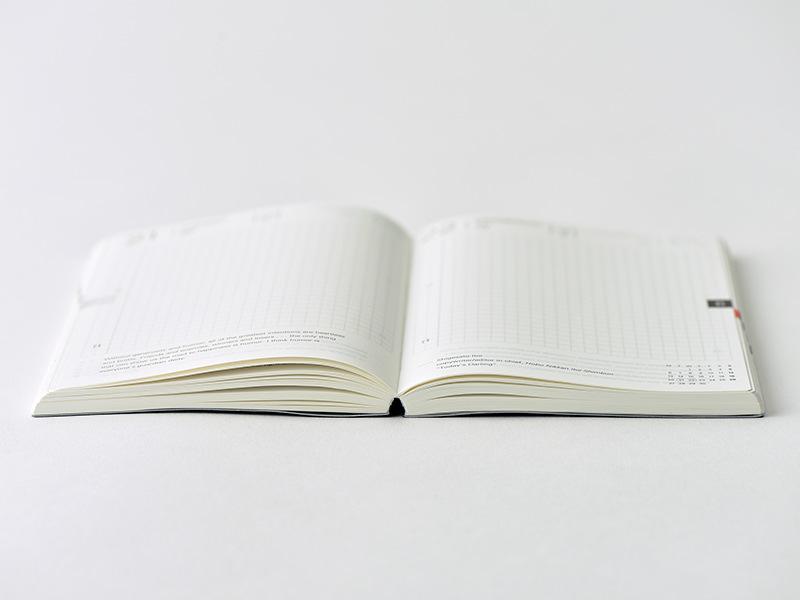 In addition to the Arts&Science logo, the Japanese characters for “techo” (which means “planner”) are stamped in gold on the chic, textured cover. The Hobonichi logo and the year appear on the spine for easy reference when storing the planner in a bookshelf.