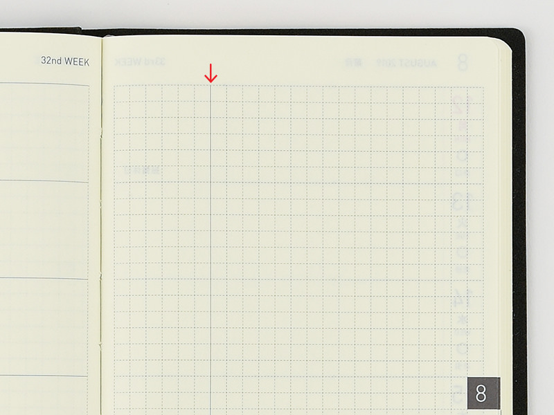 There’s also something we call the “Secret Line”: a vertical line on the memo page that allows such things as topics on the left and details on the right, or drawing out visual timetables and plans. The line is printed lightly enough that you can ignore it when using the page as a whole.