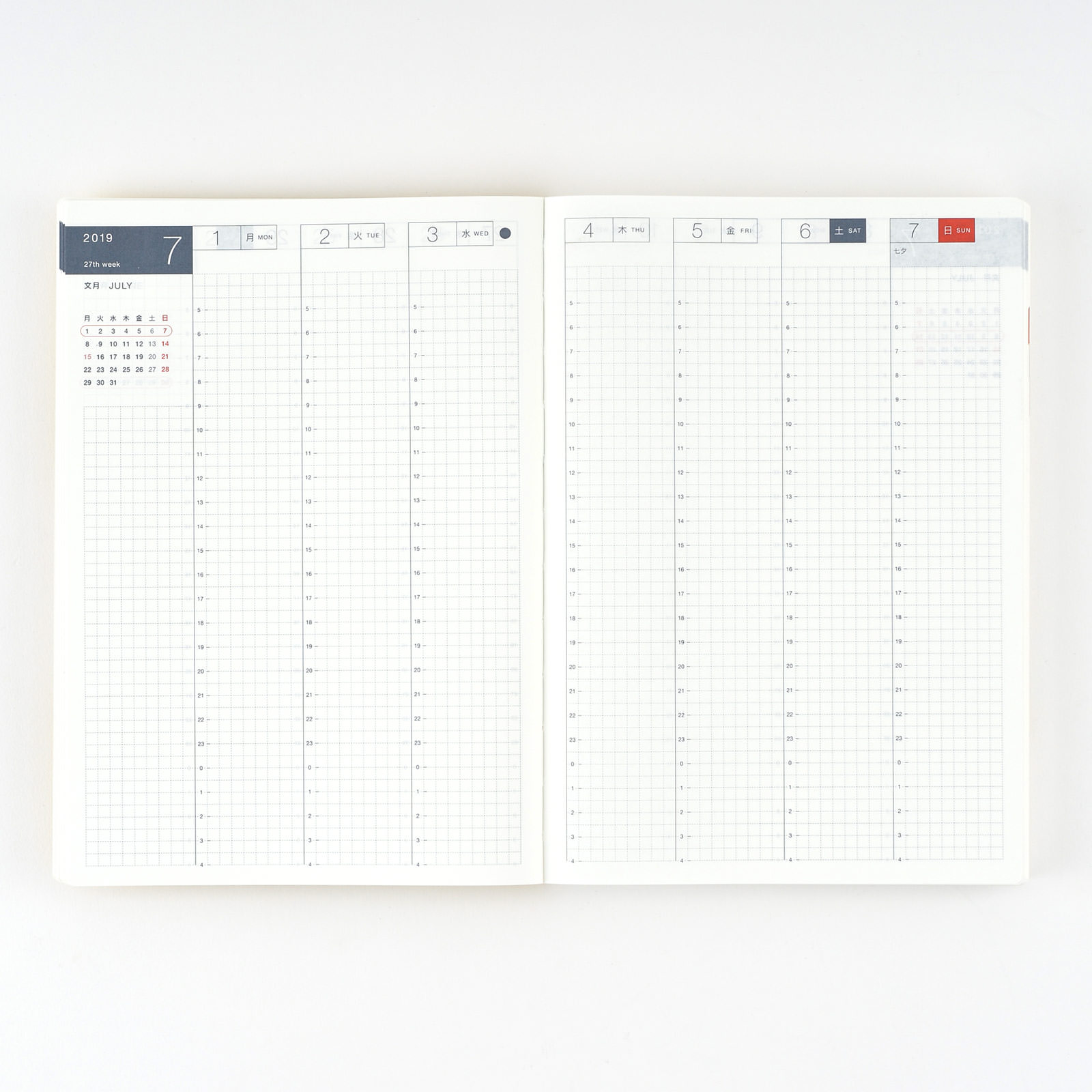 We first introduced the Avec in response to customers who struggled with bulging books after collecting a year's worth of pasted material in the daily pages. The Avec version splits the Japanese A5 Hobonichi Techo Cousin, design and all, into a 2-book set at six months each with only slight variances in calendar spans and the number of extra pages in the back. This allows you to fill the pages to your heart’s content with scheduling, diaries, little notes, tickets, photographs, doodles, and anything that strikes your fancy.