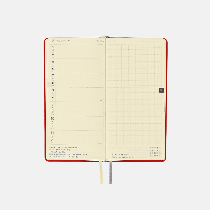 When you order this Hobonichi Techo Weeks, you’ll receive a clear, adhesive corner pocket and a mini-size fold-out Hobonichi Japan Railway Map 2019.
