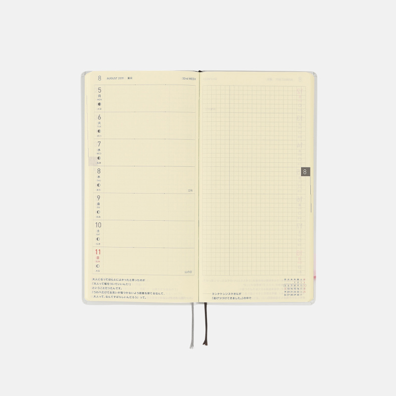 When you order this Hobonichi Techo Weeks, you’ll receive a clear, adhesive corner pocket and a mini-size fold-out Hobonichi Japan Railway Map 2019.