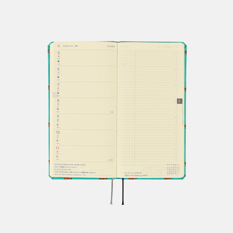 When you order this Hobonichi Techo Weeks, you’ll receive a clear, adhesive corner pocket and a mini-size fold-out Hobonichi Japan Railway Map 2019.
