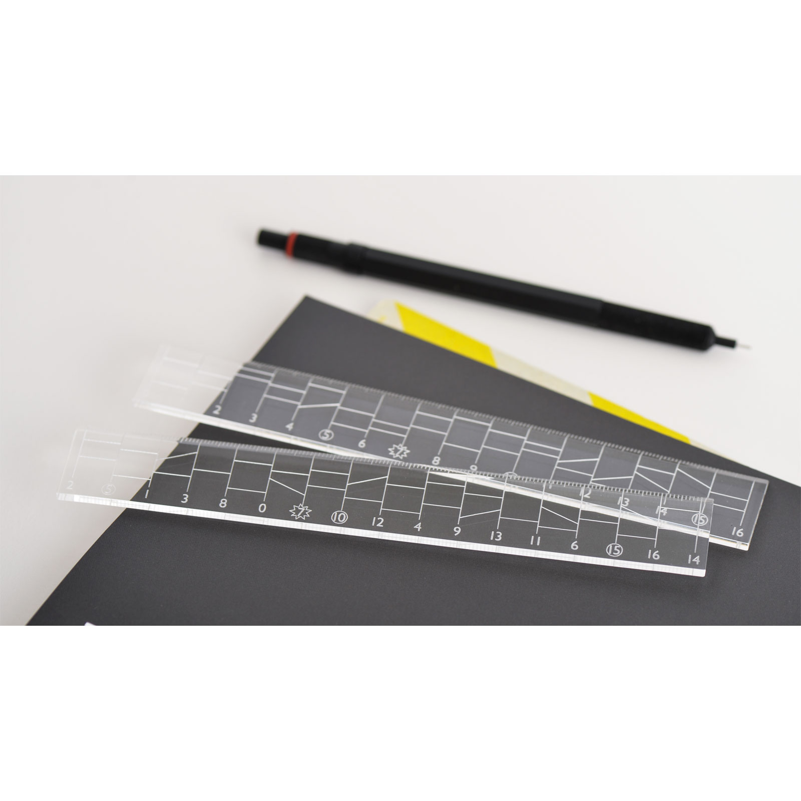 The centimeter scale markings have been laser-etched into the acrylic, so they will not fade.