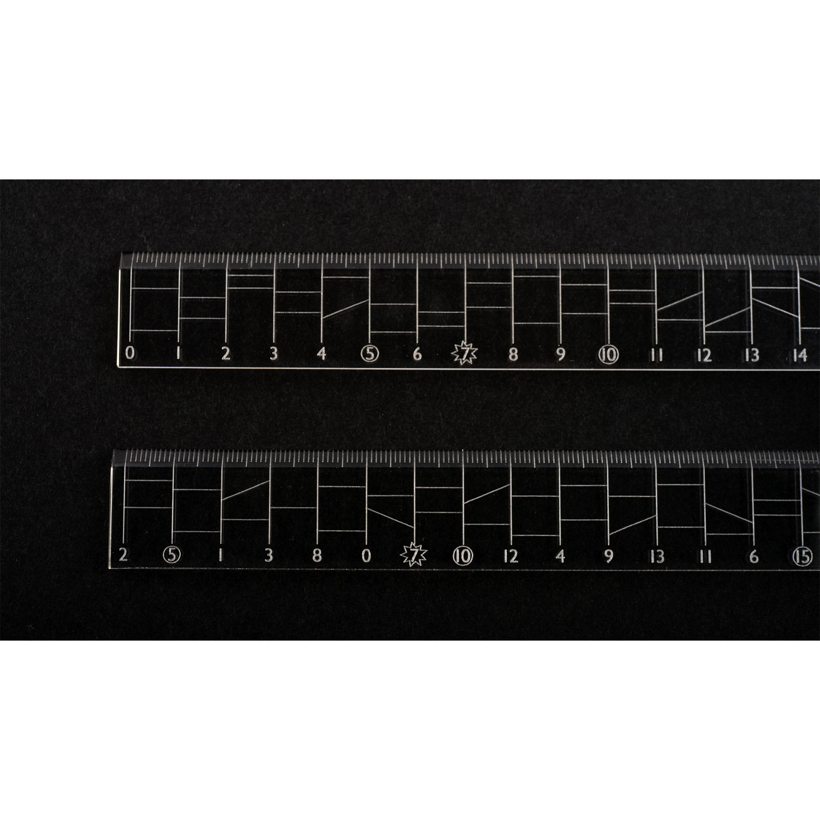 In the “Normal” type, starting at the unlabeled line at 1 cm, for example, will reach the number 1 at the bottom, and starting at the line for 5 cm will reach the number 5 at the bottom.