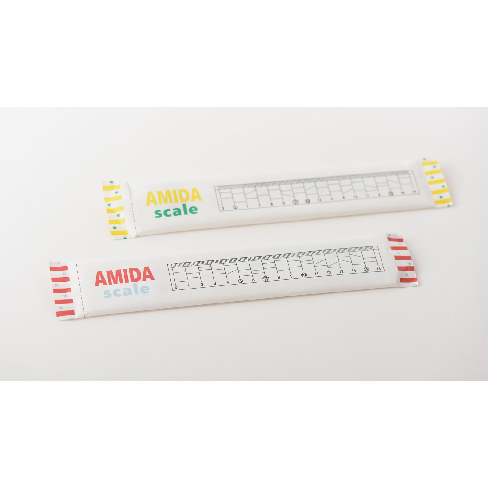 AMIDA scaleThis 16 cm ruler contains the outline for the Japanese pencil-and-paper game Amida-kuji, in which each person chooses a horizontal line and follows the path downward, taking every single turn until they reach the randomly-assigned result at the bottom.