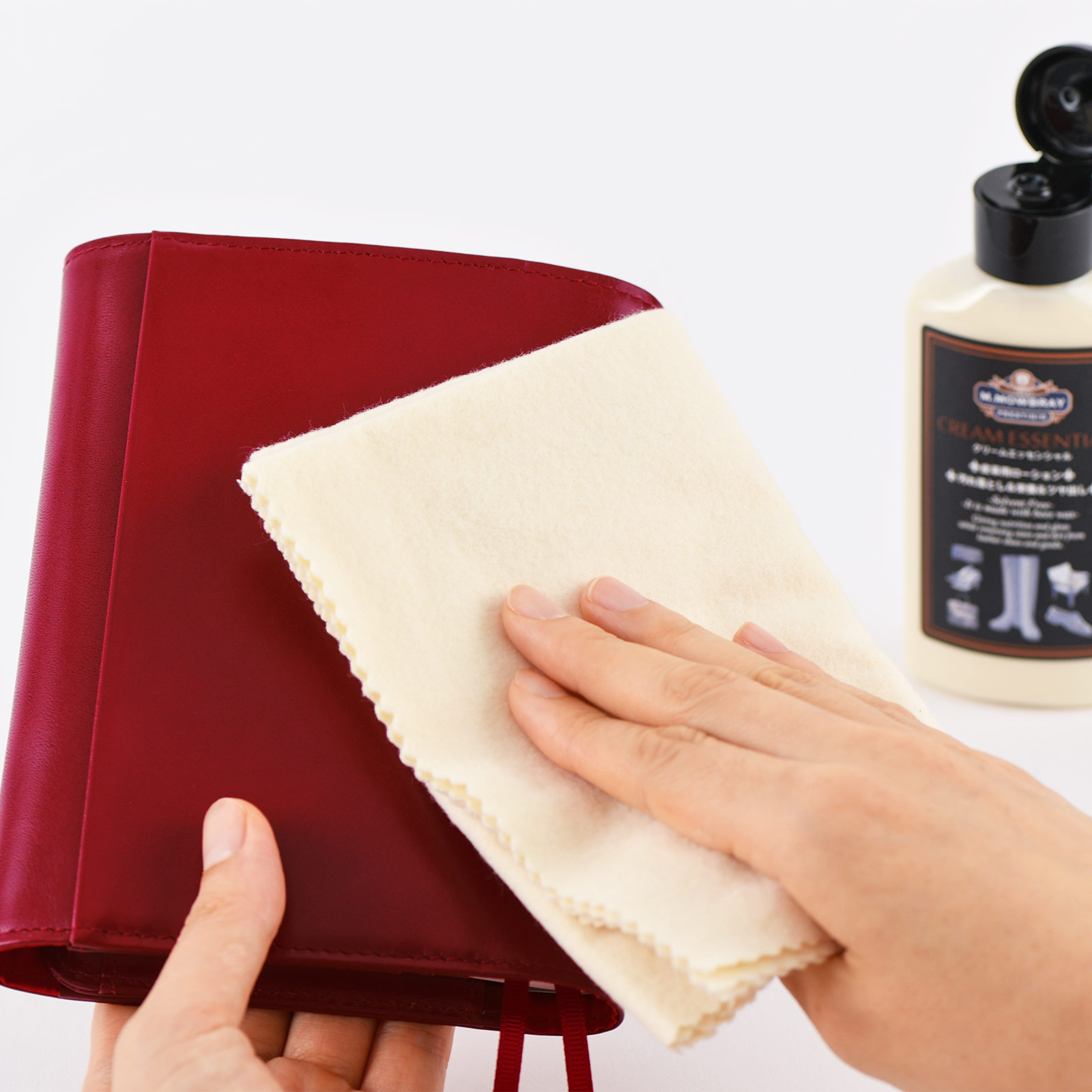 *When using the Leather Delicate Cream on any of the Arts&Science covers, rubbing the leather strongly may cause the leather dye to stain the wiping cloth. However, this will not cause the leather to fade or lose color.
