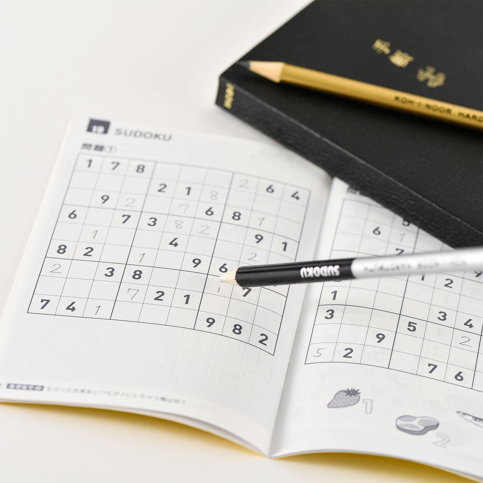 Graphite Pencils with Eraser - SudokuEraser and pencil come in one body in this unique writing utensil made by Koh-I-Noor, a venerable Czech stationery maker. You can sharpen the eraser tip just like you would sharpen a pencil, enabling you to erase small letters. It’s a perfect tool to write in your techo, or to play a game of crossword puzzle or Sudoku.