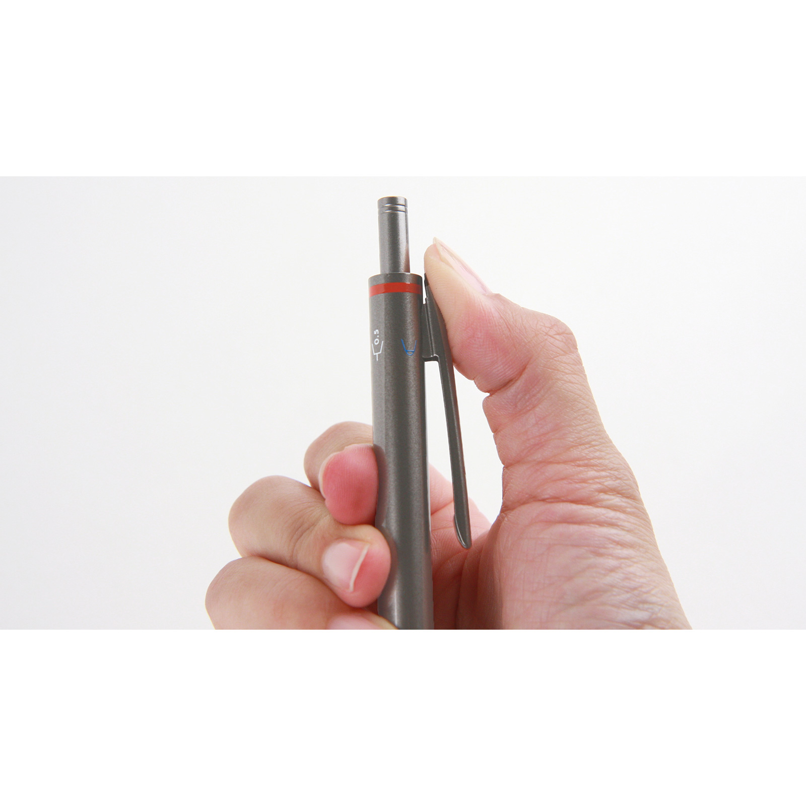 Rotring Four-in-OneThis multi-function Rotring pen provides high-precision writing, making it popular with professional designers and drafters. The pen combines black, red, and blue ballpoint pens with a 0.5 mm mechanical pencil, which gives the pen a comfortable weight and sense of stability. The pen body is slim enough for the pen to fit into the Hobonichi Techo cover’s pen holders.