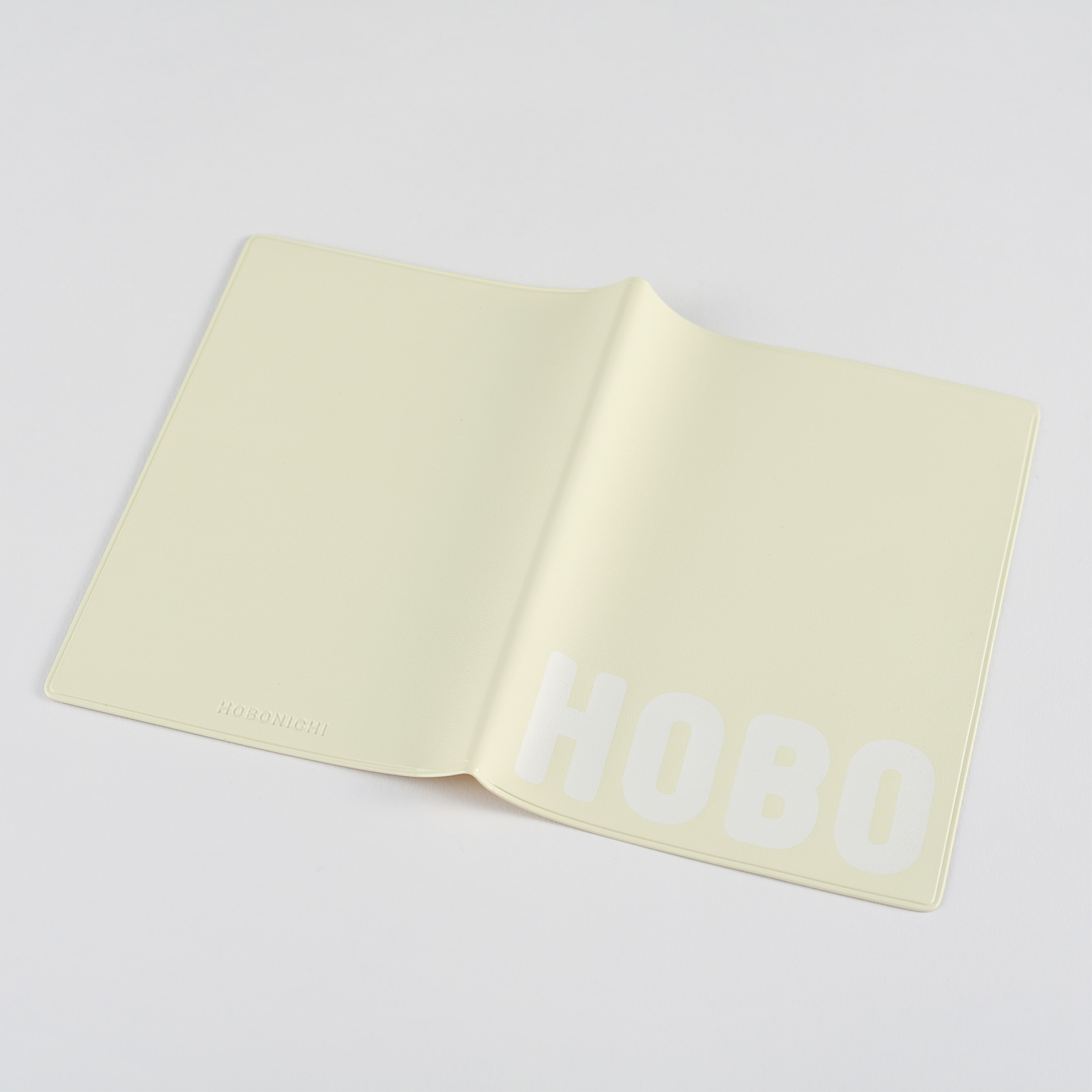 The case is a gentle hue of ivory with the “Hobo” imprinted on the front cover and “Hobonichi” imprinted on the back.